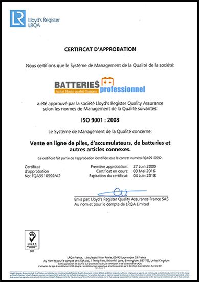 BATTERIEPROFESSIONNEL OBTIENT LA CERTIFICATION ISO 9001 : 2008 SYSTÈME DE MANAGEMENT DE LA QUALITÉ